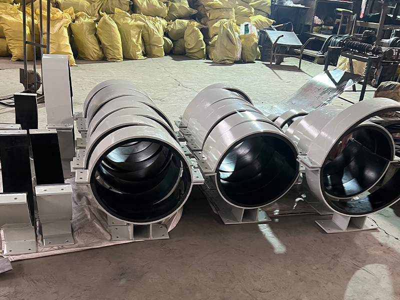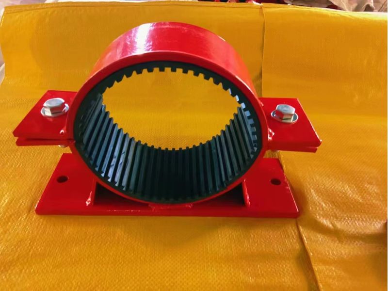 Pipe outer diameter | Long base | Base width | Hole diameter | Steel plate thickness | Rubber thickness | Support steel plate thickness | Arc plate thickness | Center distance |