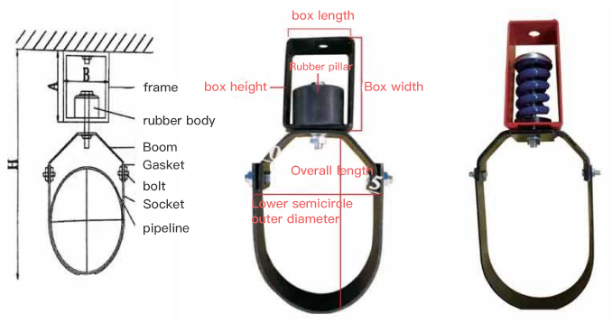 The XDD type pipe hanger is a pipe shock absorbing hanger shock absorber in which rubber and iron frames are bolted together. On the one hand, it can fix the pipe and has good isolation on the vibration and noise generated when the medium flows in the pipe. Shock isolation effect.