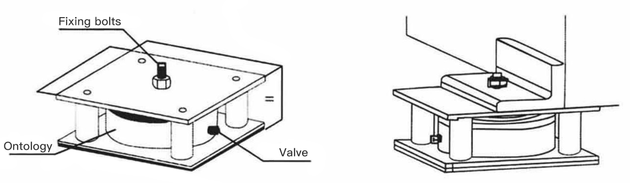 The low-frequency air spring shock absorber is an elastic element consisting of an air chamber, a rubber elastic diaphragm, and a support plate.