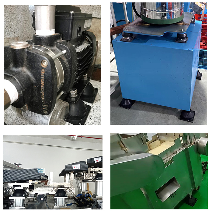 The product is divided into four sizes and structures, each size has eight load-bearing specifications. The axial load is from 10-1280kg. The static deformation under the rated load is in the range of 3-12mm. The corresponding natural frequency is in the range of 9-16Hz. The damping ratio is greater than 0.05. . This shock absorber has good isolation effect on rotation and reciprocating mechanical vibration above 1000r/min.