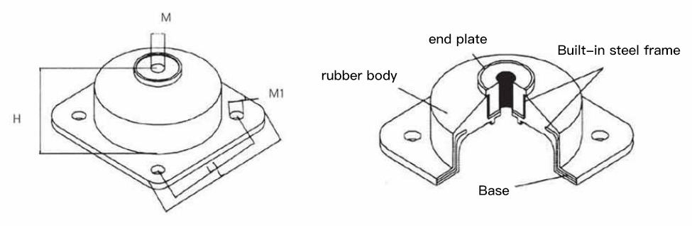 JGF type shock absorber is made of built-in shear steel plate, fixed parts and rubber body.